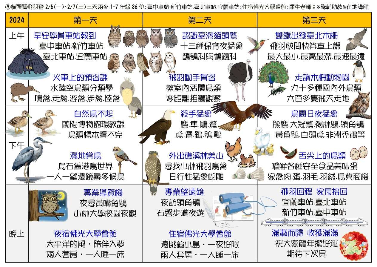 一、2024生態素養冬令營五種課程日期1/22~2/7,招生涵蓋1~9 年級學生,詳請見網站www.i3nature.com.tw。