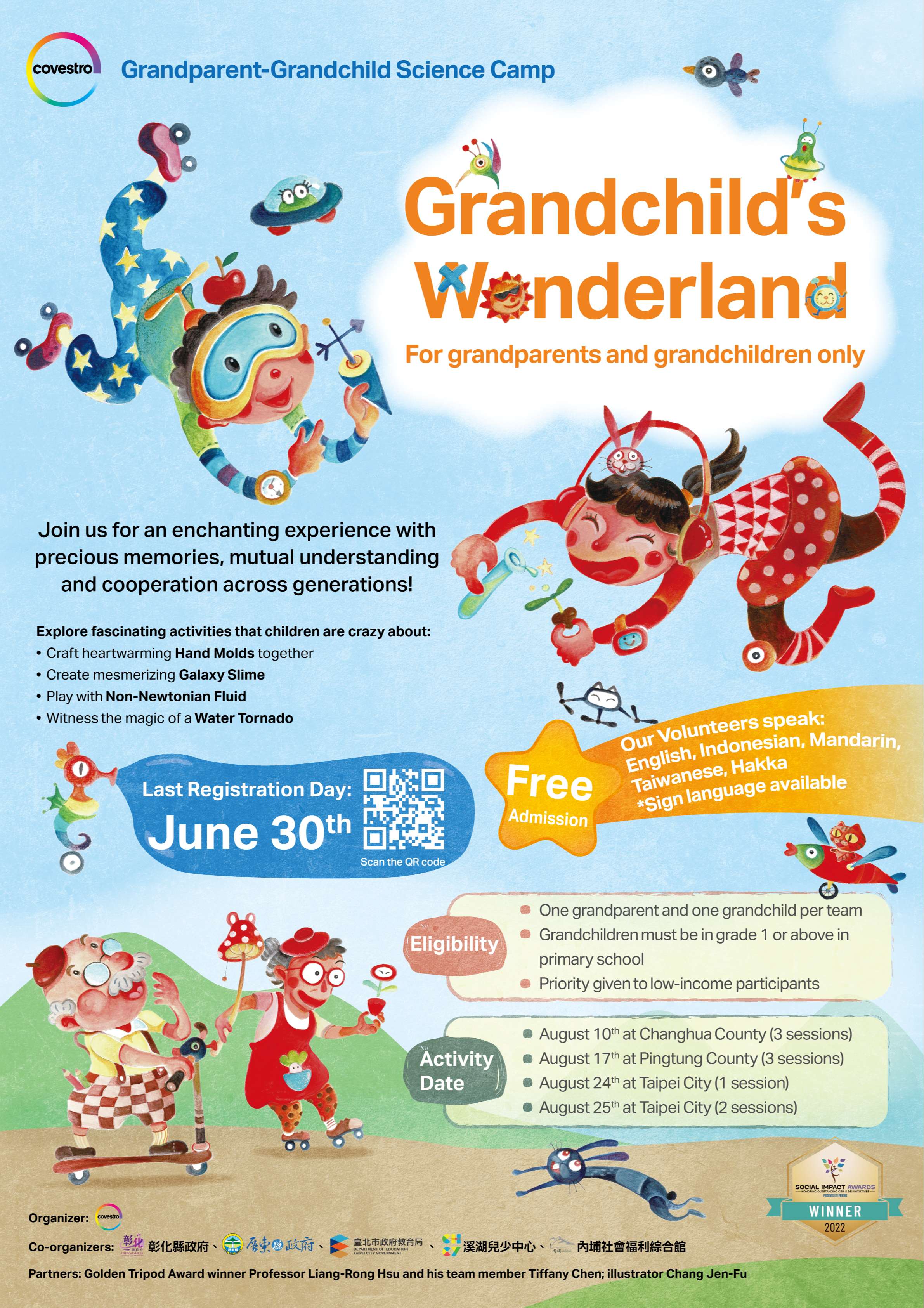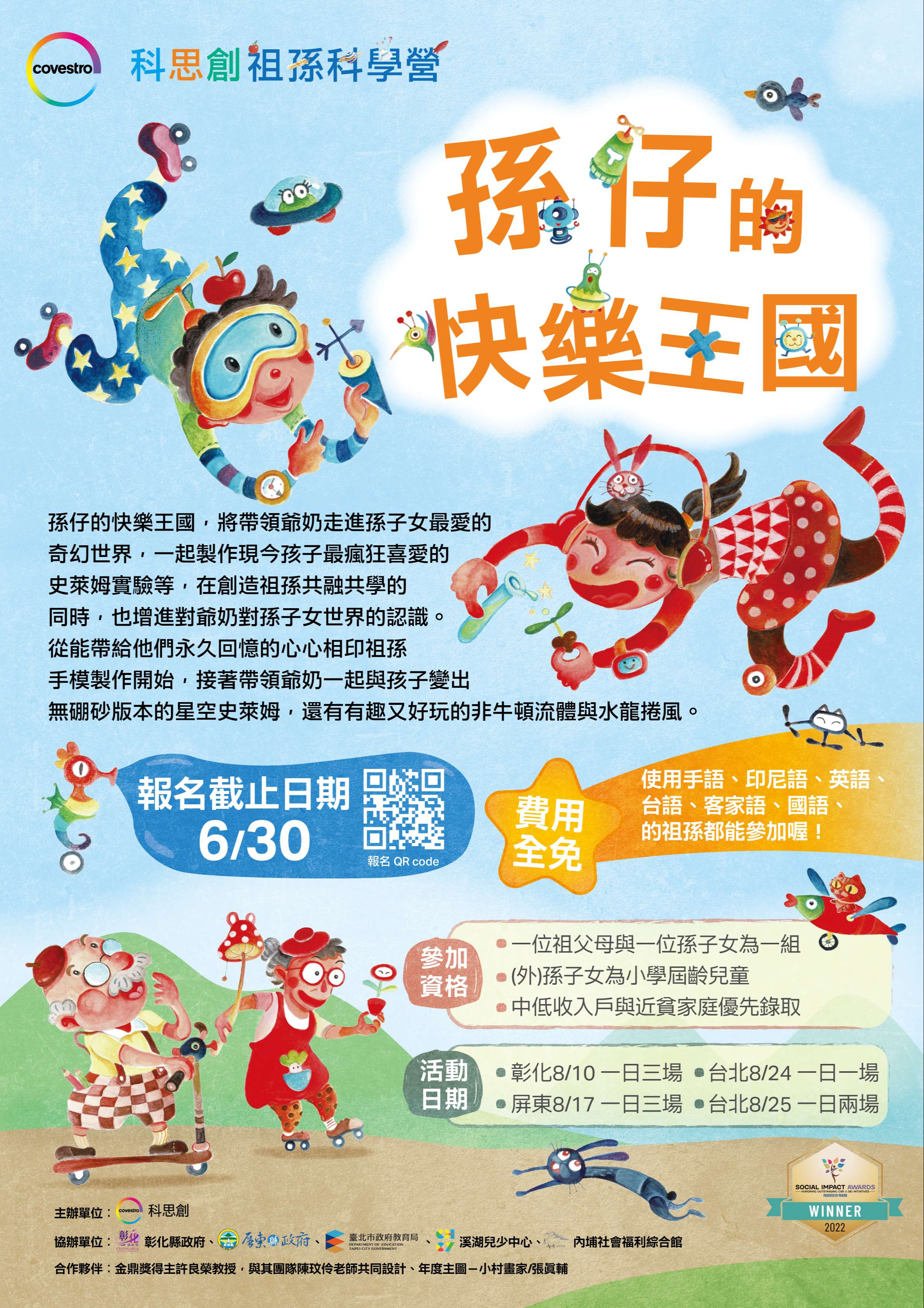 (四)參加對象:祖父母及小學屆齡之孫子女,祖孫2人一組, 每場次最多18組。