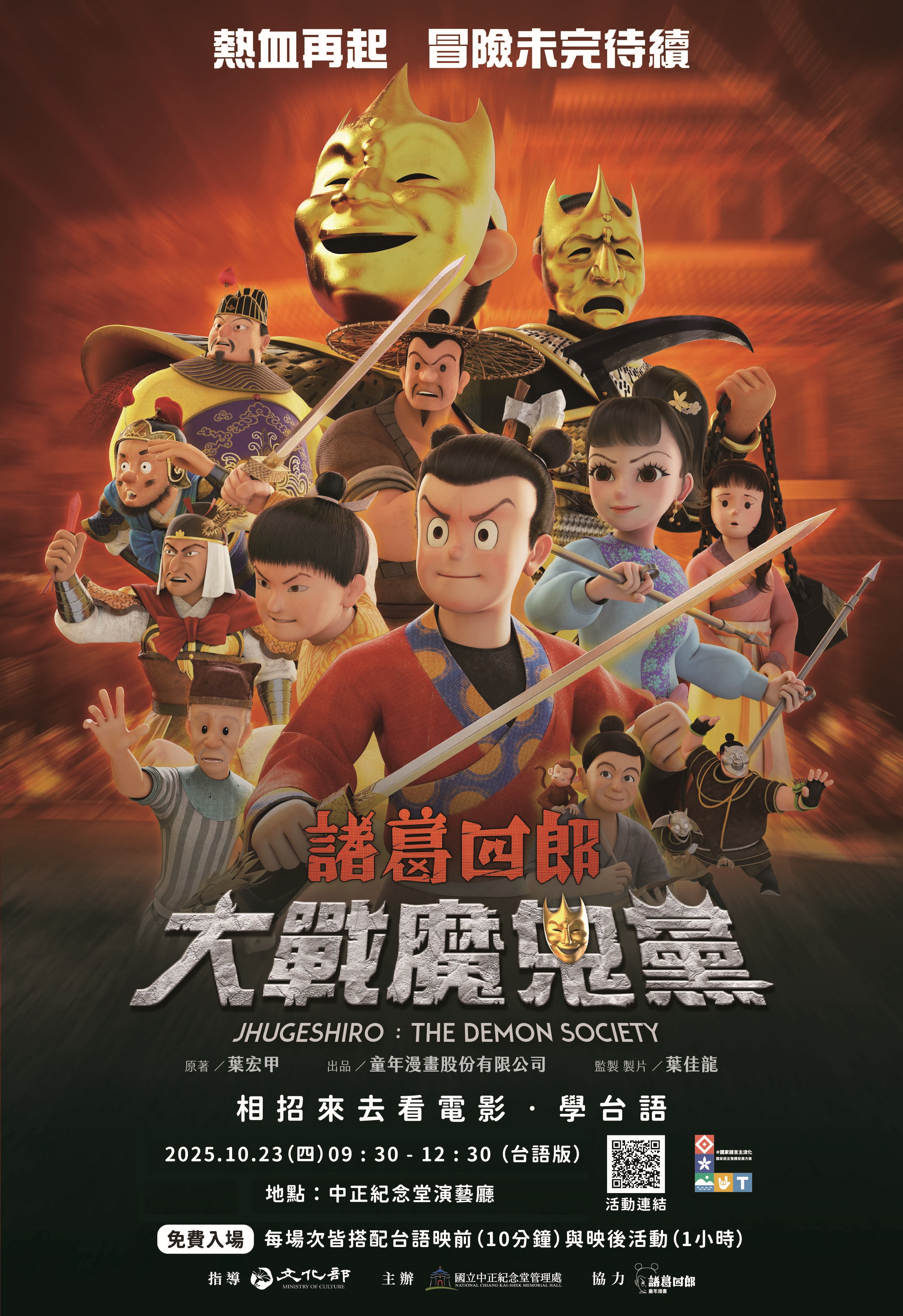 旨揭動畫電影訂於本(114)年10月23日上午9時30分至12 時30分於中正紀念堂管理處演藝廳辦理,免費觀賞並搭配映前導讀及映後座談。