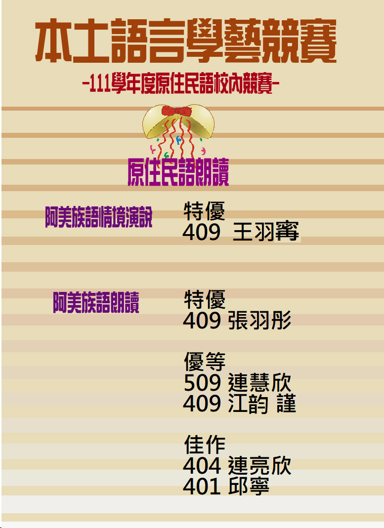 恭喜以下得獎學生 感謝老師及家長們辛勤指導!!!