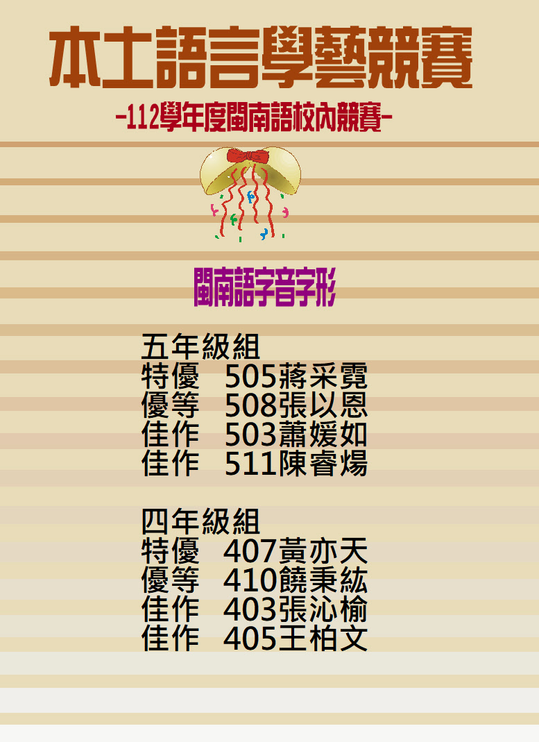 112學年校內本土語競賽-閩南語字音字形獲獎名單